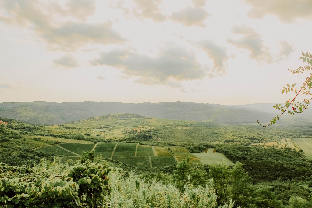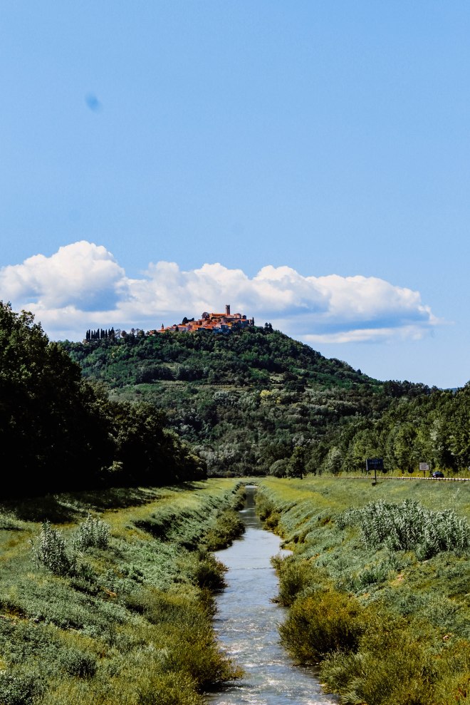 From the top of Motovun, the landscape rolls out like crumpled fabric. Olive groves line up in neat tufts, vineyards are tight braids. All of it looks like an illustration, like something you could cup in your hand.
